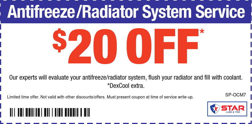 Good only atStar Lube of Grove Print coupon Offer details Radiator System Service $20 OFF * See coupon for exclusions. Email Coupon First name * Last name * Email address *